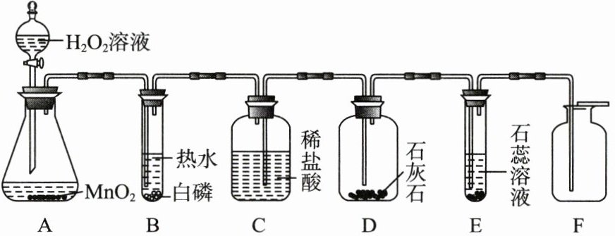 (3)由装置的特点可知,A中生成的氧气从B中进入C中,C中压强增大,能将C中的稀盐酸压入D中,D中稀盐酸与大理石反应生成氯化钙、水和二氧化碳,反应的化学方程式为CaCO₃+2HCl$\xlongequal{}$CaCl₂+H₂O+CO₂↑。