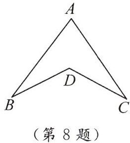 ▲8. 如图,若$AB = AC$,$BD = CD$,$∠B = 20^{\circ}$,$∠BDC = 120^{\circ}$,则$∠A = $