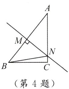 4. 如图,在$\triangle ABC$中,$AC = 4\mathrm{cm}$,线段$AB的垂直平分线交AC于点N$,$\triangle BCN的周长是7\mathrm{cm}$,则$BC$的长为