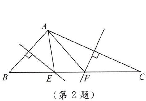 2. 如图,在$\triangle ABC$中,$\angle BAC > 90^{\circ}$,$AB的垂直平分线交BC于点E$,$AC的垂直平分线交BC于点F$,连结$AE$,$AF$,若$\triangle AEF的周长为2$,则$BC$的长是(