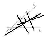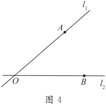 任务 4 如图 5,若要求垃圾处理站的位置点 $ P_4 $ 满足到两条公路 $ l_1 $ , $ l_2 $ 及两个垃圾分类点的连线 $ AB $ 的距离都相等,请你用尺规作图确定点 $ P_4 $ 的位置。