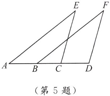 5. 如图,点 $ A,B,C,D $ 在一条直线上,$ AB = CD $,$ \angle A = \angle FBD $,$ CE // DF $。求证:$ CE = DF $.