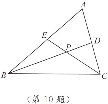 10. 如图,在 $ \triangle ABC $ 中,如果 $ BD,CE $ 分别是 $ \angle ABC,\angle ACB $ 的平分线且相交于点 $ P $,设 $ \angle A = n^{\circ} $.