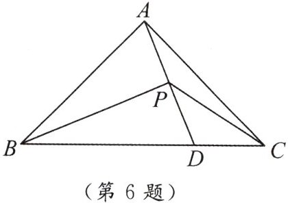 6. 如图,在△ABC中,BC>BA,在BC上截取BD= BA,作∠ABC的平分线与AD交于点P,连结PC,若△ABC的面积为$4cm^2,$则△BPC的面积为(