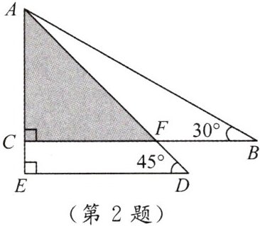 2. 将一副三角尺按如图所示的方式叠放在一起,若 $ AB = 6cm $,则阴影部分的面积是