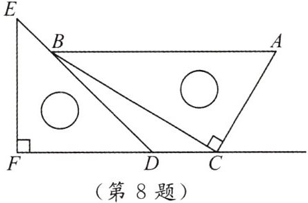 8. 将一副三角尺按如图所示的方式放置,点 $ C $ 在 $ FD $ 的延长线上,点 $ B $ 在 $ ED $ 上, $ AB // CF, \angle F = \angle ACB = 90^{\circ}, \angle E = 45^{\circ}, \angle A = 60^{\circ},AC = 10 $,求 $ CD $ 的长.