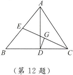 12. 如图,在 $ \triangle ABC $ 中, $ AD $ 是高, $ CE $ 是中线, $ DC = BE,DG \perp CE $ 于 $ G $. 求证:(1) $ G $ 是 $ CE $ 中点.(2) $ \angle B = 2 \angle BCE $.