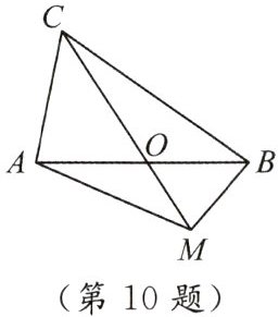 10. 如图,在 $ \triangle ABC $ 中, $ AB = BC = 8,AO = BO $,点 $ M $ 是射线 $ CO $ 上的一个动点, $ \angle AOC = 60^{\circ} $,则当 $ \triangle ABM $ 为直角三角形时, $ AM $ 的长为