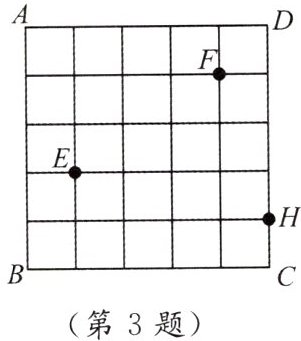 3. 如图,正方形网格 $ ABCD $ 是由 $ 25 $ 个边长相等的小正方形组成,将此网格放到一个平面直角坐标系中,使 $ BC // x $ 轴,若点 $ E $ 的坐标为 $ (-3,-1) $,则点 $ H $ 的坐标为