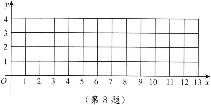 ▲8. 如图,在平面直角坐标系中,我们把横、纵坐标都是整数的点叫做整点. 已知点 $ A(0,4) $,点 $ B $ 是 $ x $ 轴正半轴上的整点,记 $ \triangle AOB $ 内部(不包括边界)的整点个数为 $ m $. 如当点 $ B $ 的横坐标为 $ 4 $ 时,$ m = 3 $;那么当点 $ B $ 的横坐标为 $ 4n $($ n $ 为正整数)时,$ m = $