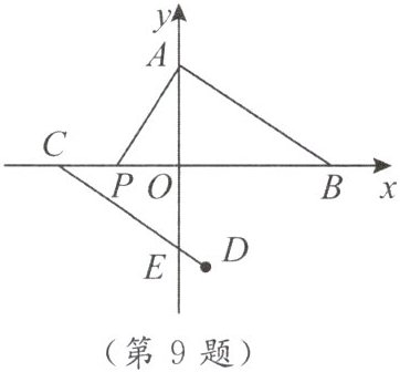 9. 如图,已知点 $ A(0,2) $,平移线段 $ AB $,将点 $ A $ 平移到点 $ C(-3,0) $,点 $ B $ 平移到点 $ D(1,-2) $,$ CD $ 交 $ y $ 轴于点 $ E $.