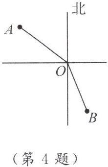 4. 如图,在灯塔 $ O $ 处观测到轮船 $ A $ 位于北偏西 $ 54^{\circ} $ 的方向,同时轮船 $ B $ 在南偏东 $ 15^{\circ} $ 的方向,那么 $ \angle AOB = $
