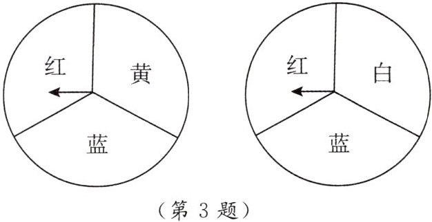 两个转盘均被分成面积相等的三个扇形区域,左边转盘分别标有红、蓝、黄,右边转盘分别标有红、蓝、白。