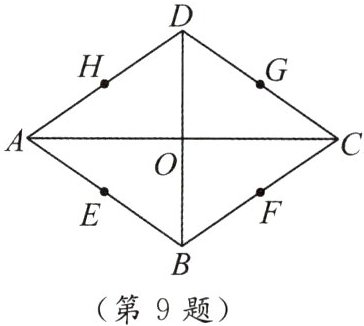 ▲9. 如图,菱形$ABCD的对角线AC和BD相交于O$点,$E$,$F$,$G$,$H分别是AB$,$BC$,$CD$,$DA$的中点.求证:$E$,$F$,$G$,$H四点在以点O$为圆心的同一个圆上.