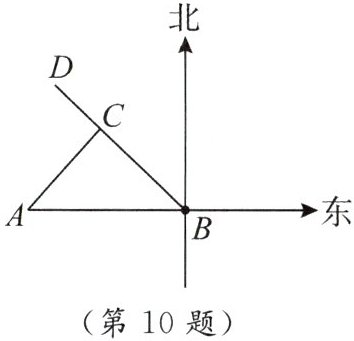 10. 由于过度采伐森林和破坏植被,我国某些地区经常受到沙尘暴的侵袭.$A市气象局测得沙尘暴中心在A市正东方向400\mathrm{km}的B$处,正在向西北方向转移(如图所示),距沙尘暴中心$300\mathrm{km}$的范围内将受到影响.$A$市是否会受到这次沙尘暴的影响?