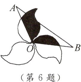 6. 如图,图案由三个叶片组成,绕点 $ O $ 旋转 $ 120^{\circ} $ 后可以和自身重合.若每个叶片的面积为 $ 4cm^2 $,$ \angle AOB $ 为 $ 120^{\circ} $,则图中阴影部分面积和为