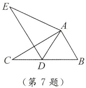 7. 如图,在 $ \triangle ABC $ 中,$ AB = 2 $,$ BC = 3.6 $,$ \angle B = 60^{\circ} $,将 $ \triangle ABC $ 绕点 $ A $ 按顺时针旋转一定角度得到 $ \triangle ADE $,当点 $ B $ 的对应点 $ D $ 恰好落在 $ BC $ 边上时,则 $ CD $ 的长为