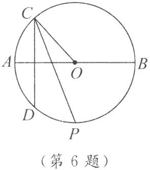 ▲6. 如图,$AB为\odot O$的一固定直径,它把$\odot O$分成上、下两个半圆,自上半圆上一点$C作弦CD\perp AB$,$\angle OCD的平分线交\odot O于点P$,当点$C$在上半圆(不包括$A$,$B$两点)上移动时,点$P$(