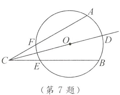 7. 如图,$\odot O的两条弦AF$,$BE的延长线交于C$点,$\angle ACB的平分线CD过点O$,请直接写出图中一对相等的线段:
