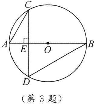 3. 如图,$AB是\odot O$的直径,弦$CD\perp AB于E$,$\angle ACD= 30^{\circ}$,$AE= 2cm$。求$DB$长。