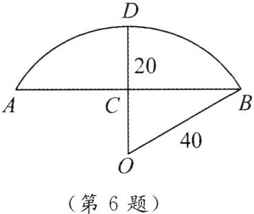 6. 如图,$\overset{\frown}{AB}$ 的半径长为 $40$,弓形的高 $CD$ 为 $20$,求 $\overset{\frown}{AB}$ 的长.