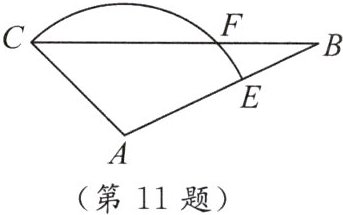 11. 如图,在 $\triangle ABC$ 中,$AB = 4cm$,$\angle B = 30^{\circ}$,$\angle BCA = 45^{\circ}$.以点 $A$ 为圆心,以 $AC$ 为半径作弧与 $AB$ 相交于点 $E$,与 $BC$ 相交于点 $F$.