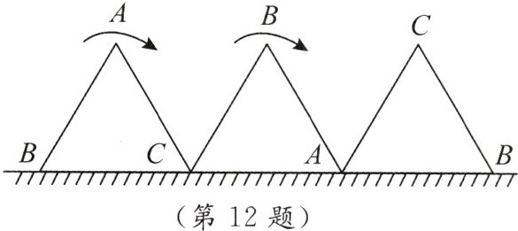 ★12. 如图,一块等边三角形的木板,边长为 $1$,现将木板沿水平线翻滚两次.求 $B$ 点从开始至结束所走过的路径长度.