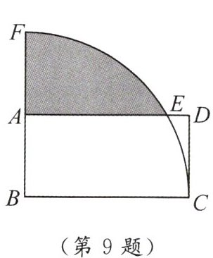 ▲9. 如图,已知矩形$ABCD$中,$BC = 2AB$,以点$B$为圆心,$BC为半径的弧交AD于点E$,交$BA的延长线于点F$.设$AB = 1$,则阴影部分的面积为