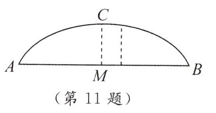 ★11. 如图,一座拱桥呈抛物线状,桥的最大高度是 16 米,跨度为 40 米.请在图中建立以 $ AB $ 所在直线为 $ x $ 轴的平面直角坐标系,并使抛物线的顶点落在 $ y $ 轴正半轴上.