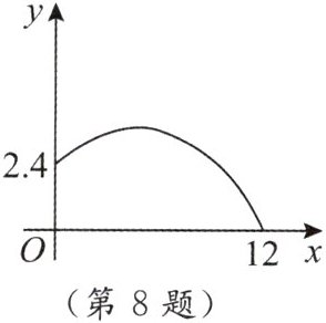 ★8. 在某次足球训练中,一队员在距离球门 $ 12m $ 处挑射,正好射中了 $ 2.4m $ 高的球门横梁,若足球运行的路线如图所示是抛物线 $ y = ax^{2}+bx + c $。有下列结论:① $ a + b + c\gt 0 $;② $ -\frac{1}{60}\lt a\lt 0 $;③ $ a - b + c\gt 0 $;④ $ 0\lt b\lt -12a $。其中正确的结论是(