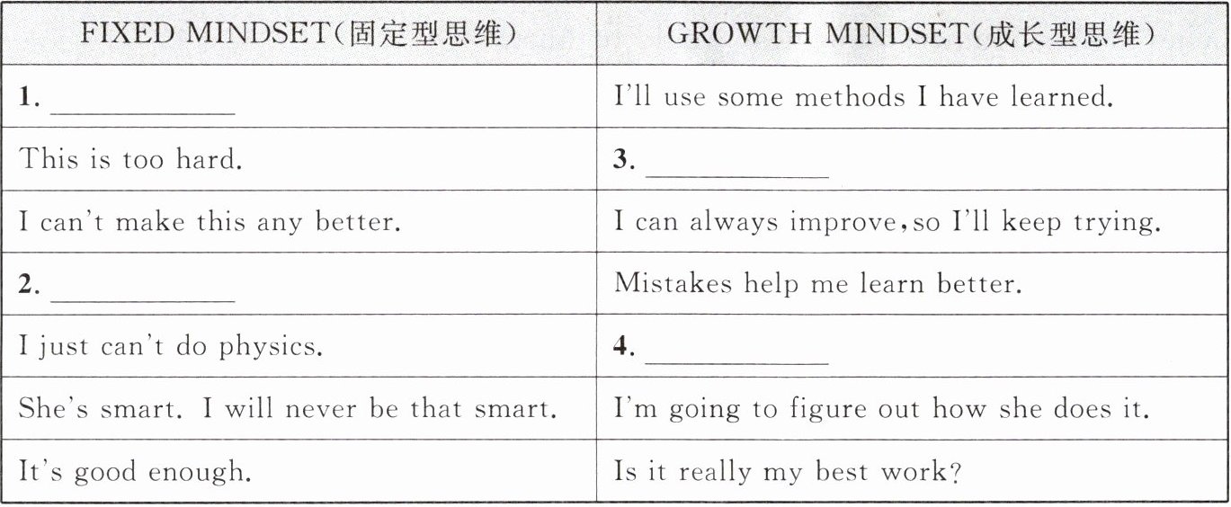 | FIXED MINDSET (固定型思维) | GROWTH MINDSET (成长型思维) |