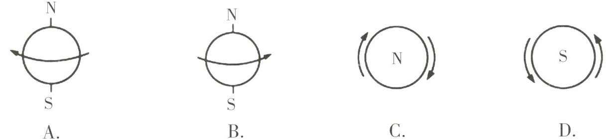3. 下列4幅图中,能正确反映地球自转方向的是( )