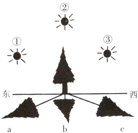 【解析】读图可知,早上太阳高度角小,影子长;正午太阳高度角大,影子短;下午太阳高度角小,影子长。故选D。