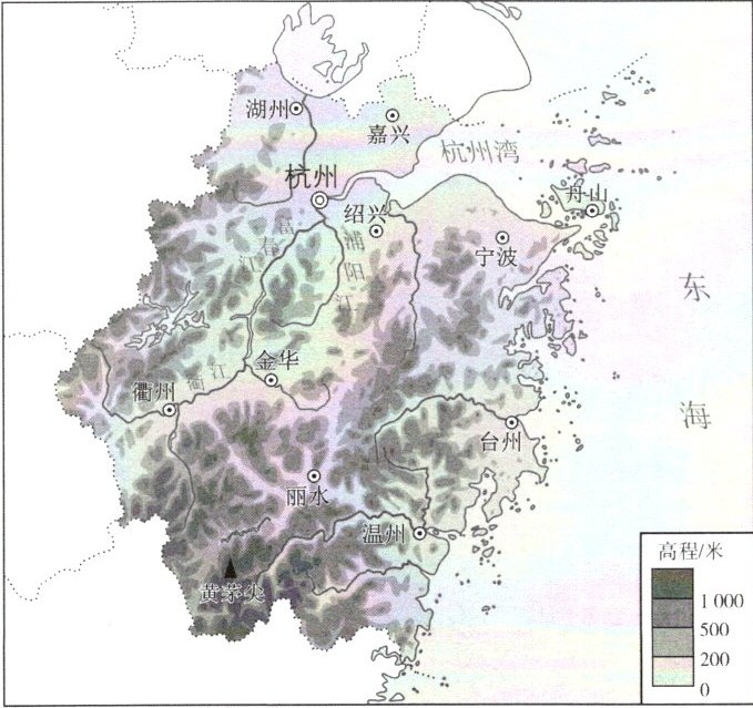 (2)根据地形图可以判断,浙江省地势是______高,______低。(填方位)