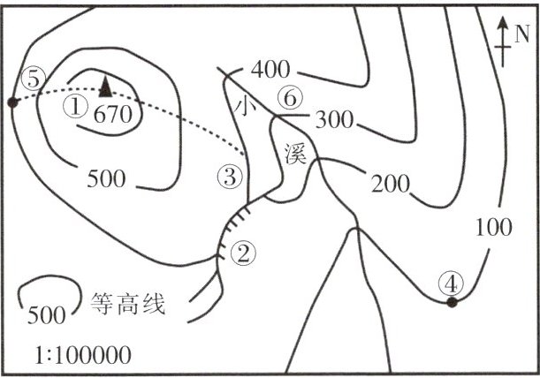 1. 为了锻炼学生体能,培养地理实践能力,某中学利用暑假开展了一次登山活动。右图为登山活动地点的等高线地形图。读图,完成下列各题。
