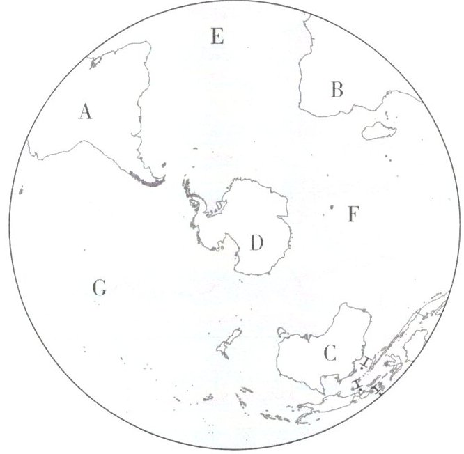 2. 下图是从南极上空俯视看到的世界海陆分布图。读图,完成下列各题。