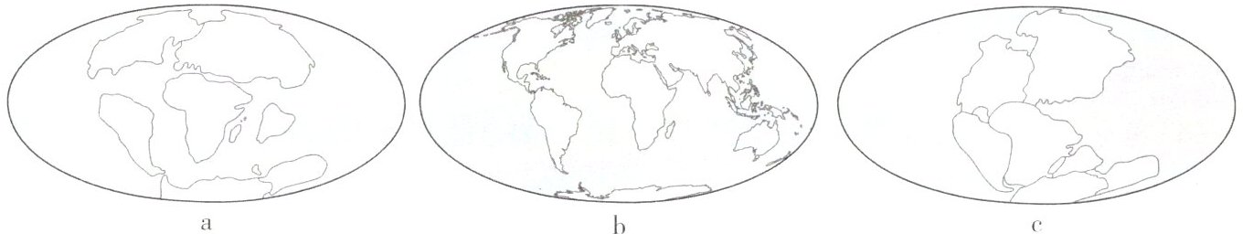 【解析】本题考查大陆漂移说的相关知识。大陆漂移说认为,地球上所有大陆在以前曾经是统一的巨大陆块,称之为泛大陆或联合古陆,中生代末期开始分裂并漂移,逐渐到达现在的位置。由此可知,根据大陆漂移说,陆地、海洋变化的过程正确顺序是c→a→b。故选C。