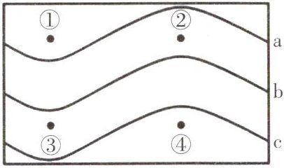 【解析】由材料可知,①②两地纬度相同,③④两地纬度相同,气温 a>b>c。①地位于气温最高的等温线内,气温最高,同纬度的②地位于 a、b 气温值之间,气温比①地低,故②地气温<①地气温,排除 A;③④地气温比①②地要低,排除 B;③地位于气温值 b、c 之间,小于 b,大于 c;④地气温小于 c,故④地气温<③地气温,排除 C;①②③④四地气温的情况为④<③<②<①,D 正确。