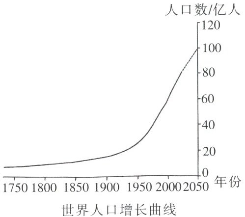 1. 读世界人口增长曲线图(含预测),世界人口数量的变化趋势是 ( )