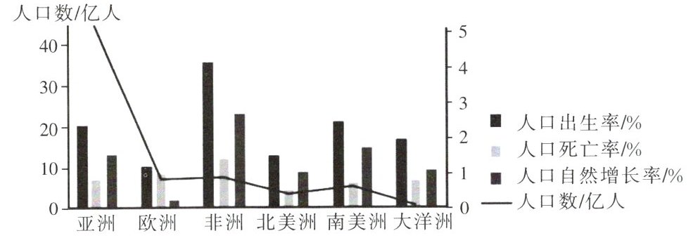 3. 读世界各大洲人口数及人口自然增长率示意图,人口数量最多的大洲和人口自然增长率最低的大洲分别是 ( )
