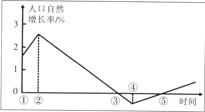 下图为某国人口自然增长率随时间变化示意图。读图,完成下面各题。