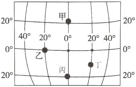 8. 有位旅行家讲述了一则旅行趣闻,他说他到过一个神奇的地方,在那里,他面向北半球,背对南半球,同时伸展双臂时,左手位于西半球,右手位于东半球。根据右侧经纬网示意图,你认为这个神奇的地方是( )