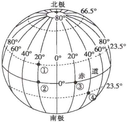 6. ①②③④四点中,位于同一条纬线上的是( )