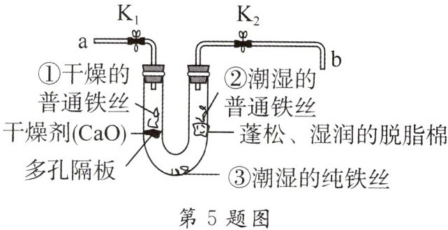 5. 铁合金是生产生活中使用非常广泛的金属材料,但铁制品容易被腐蚀而在表面生成红褐色的铁锈。为探究铁制品锈蚀的条件,寻找防止铁制品锈蚀的方法,现进行如下实验: