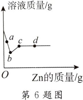 6. 向一定质量${AgNO_{3}}和{Cu(NO_{3})_{2}}的混合溶液中加入{Zn}$,溶液质量与加入${Zn}$的质量关系如图所示,则下列说法正确的是(