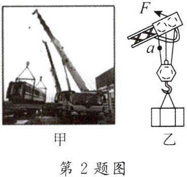 2. 图甲所示为工地中正在工作的起重机,此时物体匀速上升,其滑轮部分结构示意图如图乙所示。所有装置的重力及摩擦力均不计,则下列说法正确的是(