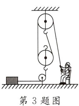 3. 小科用如图所示的滑轮组在$4秒内将一个重为100N$的物体,沿着水平地面匀速拉动了$2$米。拉力为$18N$,物体移动时受到地面的摩擦力为物重的$0.35$倍,不计绳重及机械的摩擦。那么,动力端拉动绳子的速度是