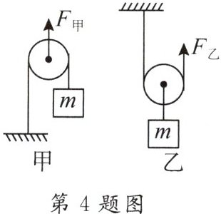 4. 如图所示,利用相同的滑轮组装成甲、乙两种装置,分别将重为$10N的同一个物体匀速向上提升1m$,已知滑轮重$1N$,不计绳重和摩擦,则下列说法中正确的是(