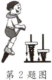 2. 如图所示,小学玩蹦蹦杆,在小学将蹦蹦杆中的弹簧向下压缩的过程中,小学的重力势能、弹簧的弹性势能的变化是(