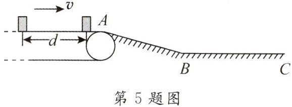 5. 某工厂的发货传输分拣线示意图如图所示,等间距排列的相同货物先后被传送带匀速运送到工作台,在工作台$AB$上匀速下滑时被扫描,后滑至水平工作台$BC$,最后在$C$点静止时被机械手臂取走进行分类。传送带与$AB$、$AB与BC$都平滑连接,$AB与BC$的材料和长度均相同,空气阻力忽略不计。